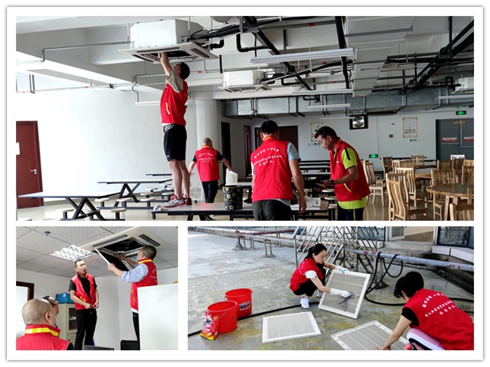 活動(dòng)當(dāng)天,十多名黨員和志愿者們按照分工拿著清洗工具、消毒液等,分組分點(diǎn)對公司24、25樓會(huì)議室、公共區(qū)域和5樓食堂的中央空調(diào)內(nèi)機(jī)濾網(wǎng)、風(fēng)葉進(jìn)行清理、擦洗和消毒,充分發(fā)揚(yáng)不怕吃苦、樂于奉獻(xiàn)的精神品質(zhì)。同時(shí),黨員和志愿者們還結(jié)合當(dāng)前垃圾分類工作,向業(yè)主單位發(fā)放垃圾分類宣傳資料,廣泛宣傳垃圾分類相關(guān)知識,切實(shí)提高業(yè)主單位職工群眾垃圾分類知曉率和參與度。