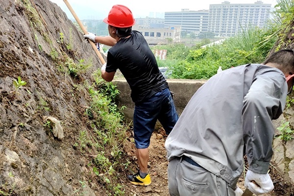 黨員們分工有序,有的彎腰割草,有的揮鋤刨根,有的拿鍬清沙,有的搬運(yùn)雜物,大家精神飽滿干勁十足,充分發(fā)揚(yáng)勞動(dòng)最光榮、不怕臟、不怕苦、不怕累的作風(fēng),不放過(guò)每一個(gè)細(xì)節(jié)。高溫下干體力活,不一會(huì)兒人人都汗流浹背全身濕透。最辛苦是清理排洪溝沉降池的泥沙,要鏟到2米多高壩上很費(fèi)體力。黨員們前赴后繼,輪流作業(yè)保證團(tuán)隊(duì)?wèi)?zhàn)斗力,“披荊斬棘除雜草,汗如雨下清溝渠”,呈現(xiàn)出一幅熱火朝天的勞動(dòng)場(chǎng)景。經(jīng)過(guò)半天的辛勤付出,排水溝煥然一新,大家都滿滿的成就感和自豪感。