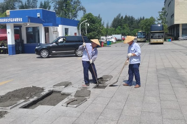 炎炎烈日下,老職工們充分發(fā)揮了黨員沖鋒在前、不怕苦不怕累的老黃牛精神,協(xié)調(diào)作業(yè)、團(tuán)結(jié)配合,通過(guò)路面挖開(kāi)、底層鋪設(shè)混凝土、壓實(shí)找平大理石等一系列施工,累計(jì)修補(bǔ)破損路面15處,并及時(shí)清理渣土衛(wèi)生,確保路面干凈整潔。他們用自己的汗水給經(jīng)營(yíng)戶(hù)出行打造出一條平坦通途,筑就護(hù)航金海公司平穩(wěn)運(yùn)行的銅墻鐵壁。金海公司繼續(xù)秉承“紅潮行為”精神,堅(jiān)持以提升營(yíng)商環(huán)境為中心,以創(chuàng)建“五化市場(chǎng)”作為推動(dòng)各項(xiàng)工作的引擎,著力營(yíng)造擔(dān)當(dāng)為要、實(shí)干為本的濃厚氛圍,真正做到為經(jīng)營(yíng)戶(hù)辦實(shí)事、辦好事。