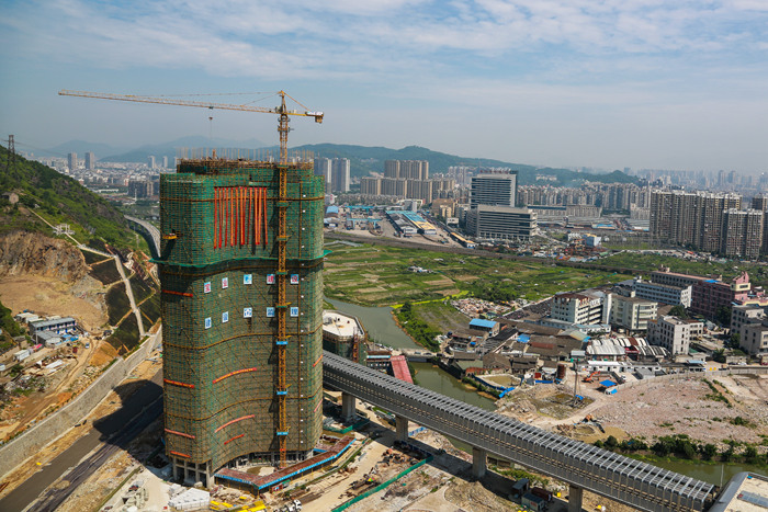 2018年6月12日,伴隨著主體頂層最后一方混凝土的澆筑到位,牛山國(guó)際城市綜合體四期工程順利完成主體結(jié)構(gòu)封頂。