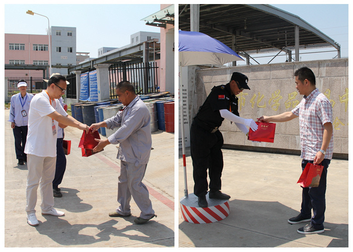 8月9日,市工業(yè)集團副總經(jīng)理南琪、工會副主席姜曉雷一行到金?;瘜W(xué)品市場開展高溫慰問。
