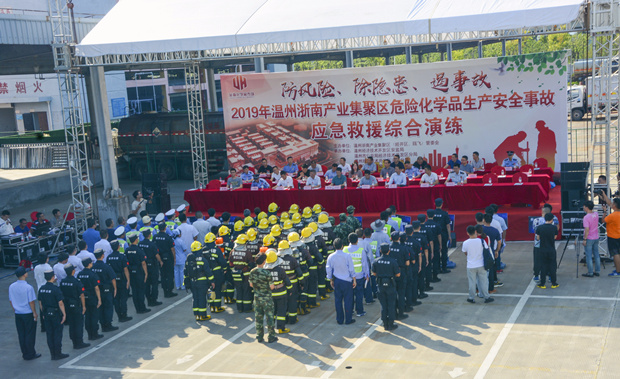 9月11日下午,2019年浙南產(chǎn)業(yè)集聚區(qū)危險(xiǎn)化學(xué)品生產(chǎn)安全事故應(yīng)急救援綜合演練在金?;瘜W(xué)品市場(chǎng)舉行,浙南產(chǎn)業(yè)集聚區(qū)(經(jīng)開區(qū)、甌飛)管委會(huì)、市公安局經(jīng)開區(qū)分局、經(jīng)開區(qū)安監(jiān)局、消防分局、星海街道、金海化學(xué)品市場(chǎng)危險(xiǎn)化學(xué)品應(yīng)急救援隊(duì)等10余個(gè)部門(單位)200余人參加觀摩演練。
