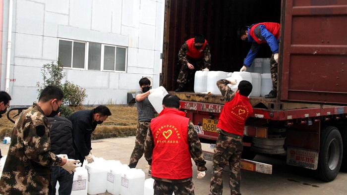 在了解到全市醫(yī)院、水廠等地方急需消毒液等防御物資的情況后,金海公司當(dāng)機(jī)立斷及時聯(lián)系溫州市謙成化工有限公司、溫州市恒順化工有限公司、溫州市金山化學(xué)試劑儀器公司等市場入駐經(jīng)營企業(yè),聯(lián)合為全市提供消毒液原料(次氯酸鈉、乙醇)。以謙成為代表的經(jīng)營戶紛紛當(dāng)即表示,經(jīng)營的消毒產(chǎn)品能滿足民用消毒標(biāo)準(zhǔn),愿意無償提供消毒劑給民生所需單位,用以防控新型冠狀病毒感染的肺炎。金海公司更是全力以赴,安排班子成員成立黨員先鋒隊,并不計成本地為有需要的單位開通“綠色通道”運輸。截至目前,累計輸送次氯酸鈉、無水乙醇等抗疫物資60余批50余噸。