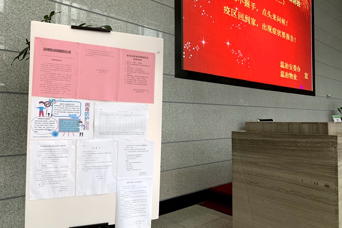 “你好,我們公司申請(qǐng)復(fù)工復(fù)產(chǎn),這是企業(yè)復(fù)產(chǎn)復(fù)工備案表、員工名單、承諾書(shū)、防控方案?!币晃黄髽I(yè)主將復(fù)工材料遞交到物業(yè)管理中心備案。在確認(rèn)無(wú)誤后,物業(yè)管理中心為其復(fù)工開(kāi)“綠燈”,并發(fā)放“臨時(shí)通行證”。